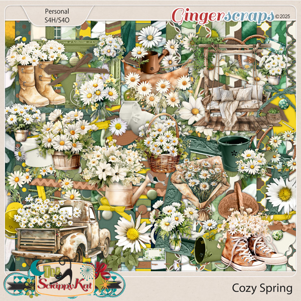 Celebrate the return of spring with The Scrappy Kat’s Cozy Spring kit, spilling over with bouquets of flowers that embody spring! Brads, tags, stitches, frames, ribbons, and so much more–it’s all here to make it easy to put together beautiful pages. The paper pack includes 20 patterned papers and 6 cardstock papers that all coordinate beautifully with the elements.
